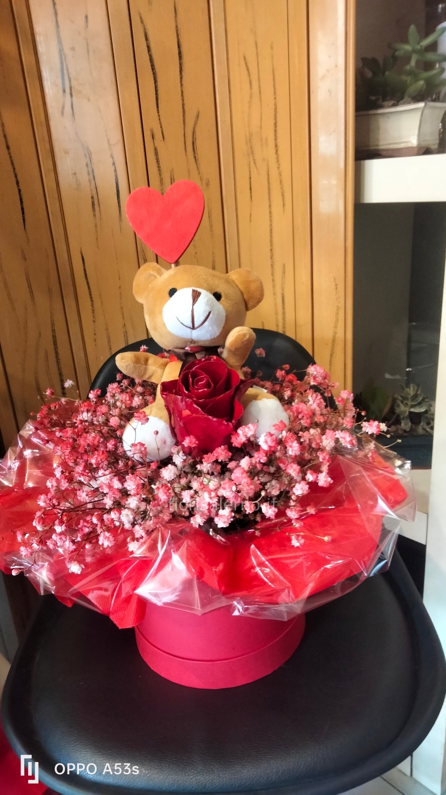 Flower box con rossa di cera peluche e cuoricino