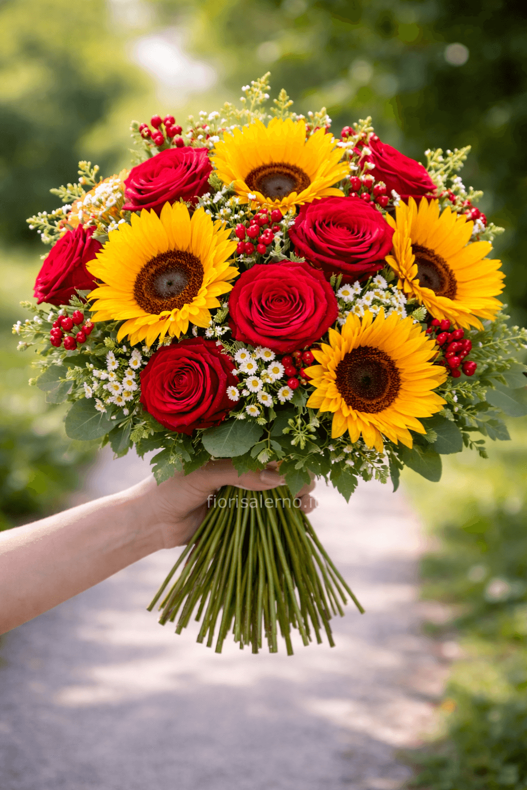Girasoli e rose rosse